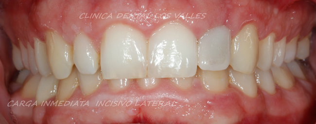 La cirugía de implante o despegamiento de la encía de este paciente fue un éxito. No hubo inflamación, apenas sangrado y el paciente disfrutó desde el primer día de un diente provisional con una estética aceptable.