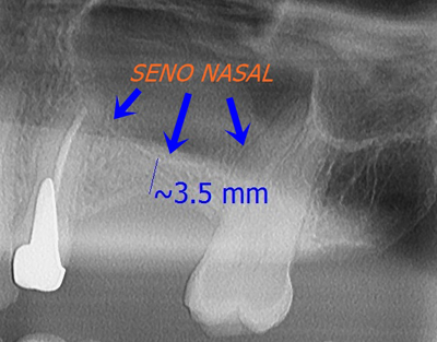 Tras realizar al paciente una radiografía panorámica y un scaner o tac dental, constatamos que tenía solamente entre 2- 3 mm de altura ósea por lo que debemos hacer una elevación de seno para que los implantes puedan tener suficiente hueso donde fijarse.