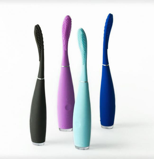 El primero es un cepillo dental eléctrico fabricado íntegramente en silicona, incluyendo sus cerdas dentales, que en solo dos minutos de cepillado, minimiza el desgaste de los dientes, al disminuir la presión. Además, consigue, gracias a sus cerdas de silicona, un masaje muy natural y eficaz en las encías, reduciendo la sensibilidad.