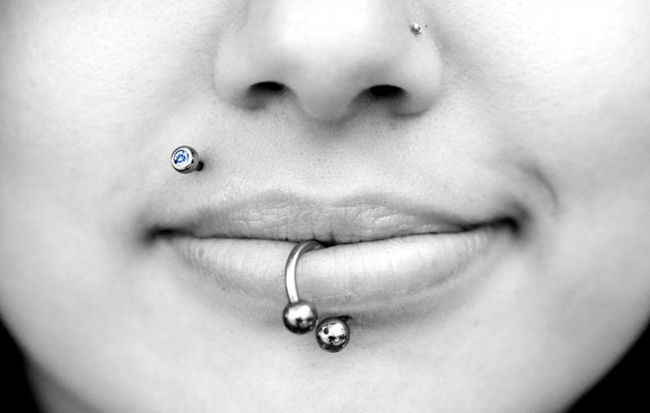 Aunque parezca mentira existen bastantes tipos de piercings, según el lugar exacto donde se coloquen; en esencia, es la práctica de perforar insertando aretes o joyería de metal, en este caso a nivel labial, con un orificio que sale del interior de la boca y vuelve al exterior.