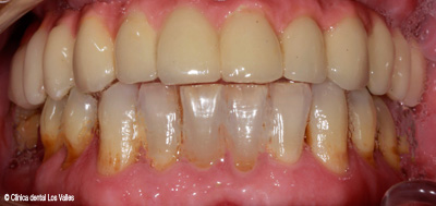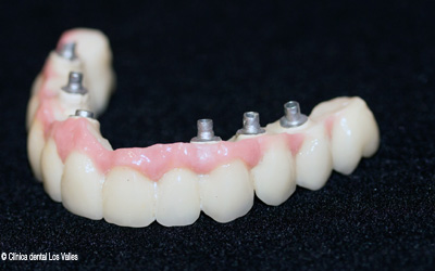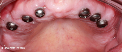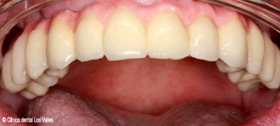 Después de tres meses de espera, en los que el paciente llevó una prótesis provisional, comprobamos que todos los implantes dentales se habían integrado correctamente, y pasamos a confeccionar una prótesis atornillada ceramometálica.